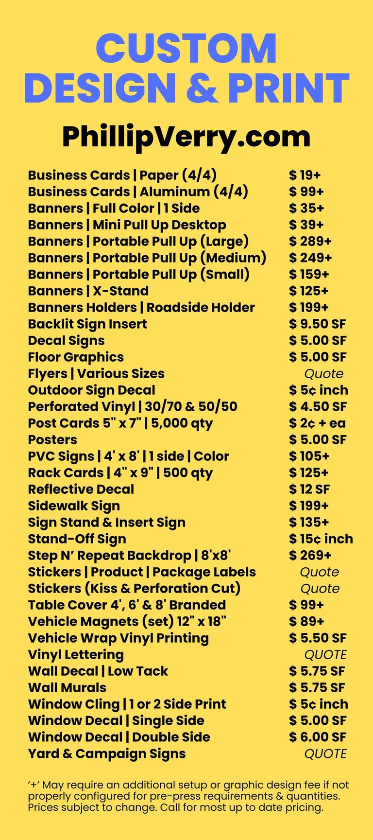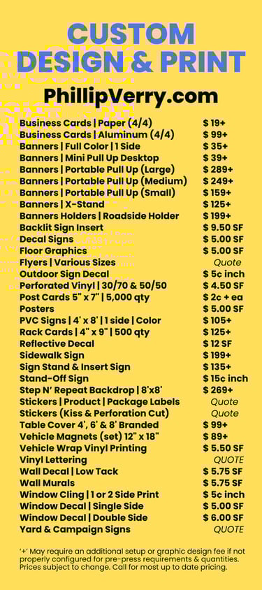 As a Graphic Designer & Marketing specialist - I am happy to custom design your signs & other print materials either in person (by appointment) in my office in SW Portland or via email/phone instructions. After approved by you, my print brokerage completes your job and ships them direct to your door.