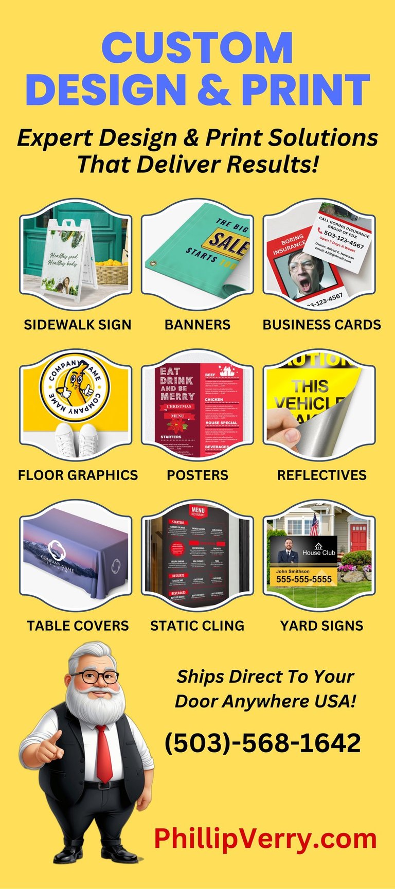 Fast design, printing & direct to your door- anywhere in the USA.